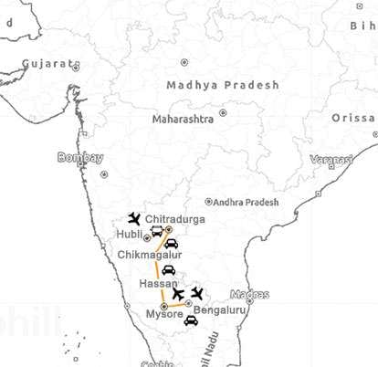 DELHI – HUBALI - BADAMI – (PATTADAKAL) – HAMPI – CHIKMAGALUR (BELUR – HALEBEEDU) – HASSAN (SHRAVANABELA GOLA) – MYSORE – BANGALORE